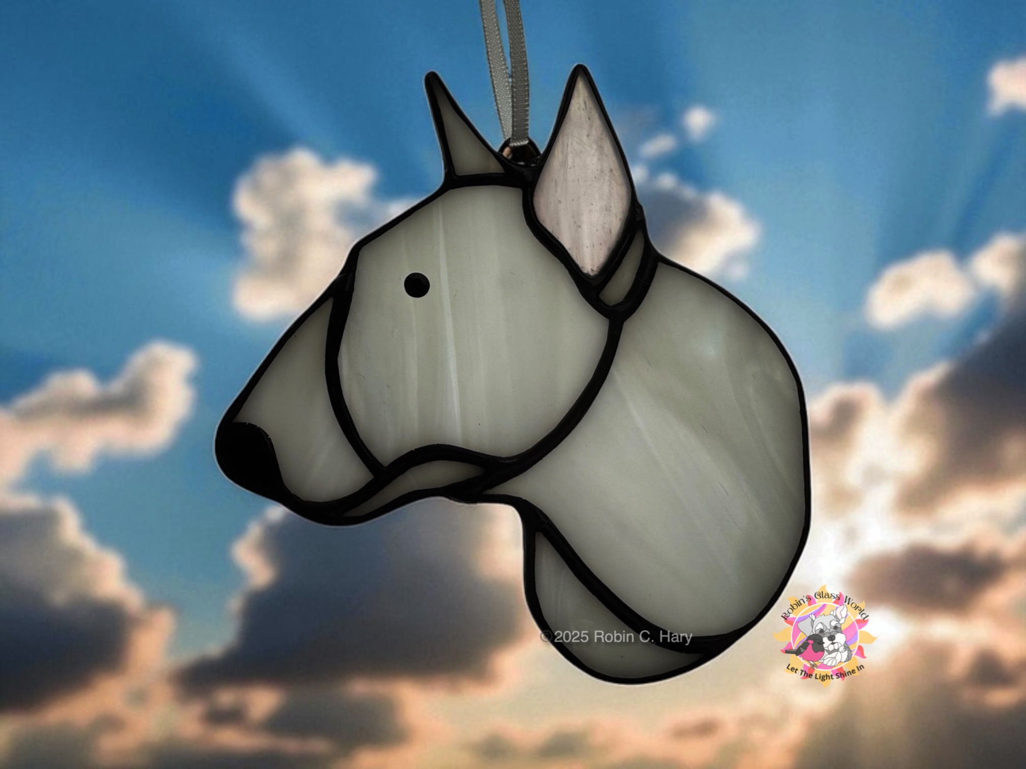 Bring the spirited essence of the Bull Terrier into your home with this handmade stained glass ornament, a radiant tribute to a breed both playful and loyal. Each piece is lovingly made by hand, ensuring that no two are ever exactly alike—just as every Bull Terrier has its own unique spark.